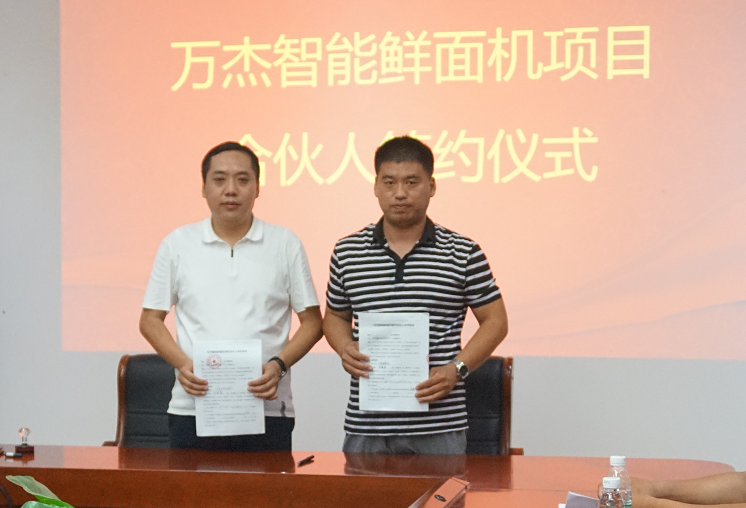 2017年8月4日,萬杰智能總部又迎來山東省兩位合作伙伴,山東省泰安市華任經貿有限公司劉總、山東省曲阜市鑫海商貿有限公司楊總分別與萬杰智能簽署了《智能鮮面機合伙人合作協議》。 此次,泰安、曲阜兩市的加入,標志著萬杰智能鮮面機項目山東市場正式開啟。至此,萬杰智能鮮面機全國招商突飛猛進,赤峰、新鄉、鄭州兩個區域、鶴壁、寧波、義烏、溫州、洛陽、大慶、許昌禹州市、泰安、曲阜相繼加入,全國招商工作屢獲佳績。 萬杰智能董事長王曉杰與山東省泰安市華任經貿有限公司劉總 萬杰智能董事長王曉杰與山東省曲阜市鑫海商貿有限公司楊總 山東省是我國面食大省,尤以打鹵面最為著名和正宗,現制鮮面條的出現,將會為當地百姓面食生活的“安全、健康、營養”創造了更多可能。 得益于主食安全和模式創新,萬杰智能聚集了全國各地的事業合作伙伴,各個城市的合伙人與萬杰智能共同扛起“主食安全”的大旗。可以說,獲得收益,充其量只是門生意,而造福百姓,然后讓所有參與者共同受益,這才可稱得上是一份事業。萬杰智能鮮面機項目的合伙人正是這樣一支隊伍,做主食安全,為一方百姓,這份既有擔當,又前景可觀的事業,誠邀全國地區意向合作伙伴。 萬杰智能主食機械——為億萬家庭主食安全服務!