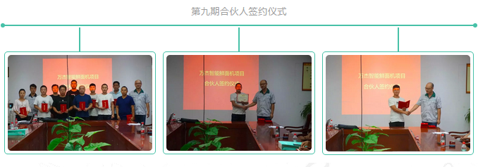 伴隨著智能鮮面機合伙人簽約以及培訓工作的常態化進行,萬杰智能在新客戶拓展以及合伙人培訓與市場輔助運營等工作的開展方面,逐漸積累起相對成熟的經驗。與此同時,令人激動的是,我們欣喜的看到,在歷次合伙人培訓的過程中,不斷涌現出在技術與經營方面凸顯出顯著優勢的合伙人學員,我們真心的感動在萬杰搭建起的平臺上,遇見了一個個如此優秀的伙伴們,相信未來在更多事業合作伙伴的共同努力下,我們有能力共同把這份主食安全事業經營的穩步向前。
