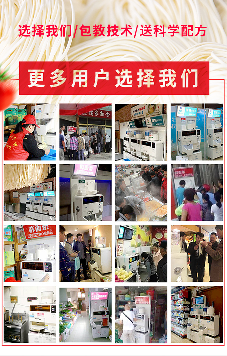 除了給客戶提供一流的設備之外,還免費為客戶提供專業技術培訓車間,專業技術老師指導培訓。購機后廠家免費贈送教學光盤,給客戶提供各種面食的制作工藝,使客戶購機即賺大錢